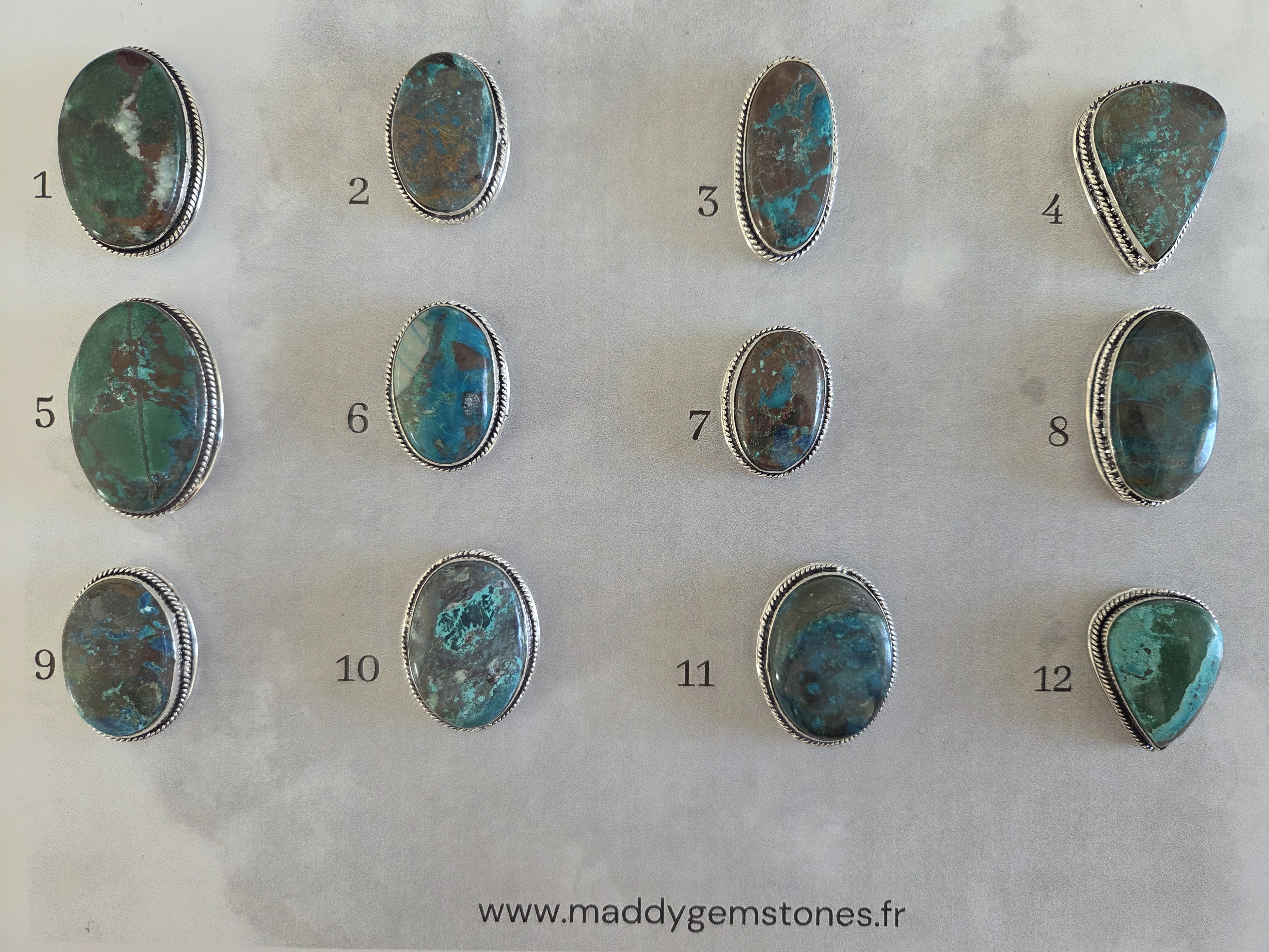 Toutes les pierres sont en photos ici, le numéro de le pierre est directement sur la photo de la pierre, sélectionne dans le menu déroulant la pierre d'après son numéro de référence, au même endroit il y a la taille de la pierre