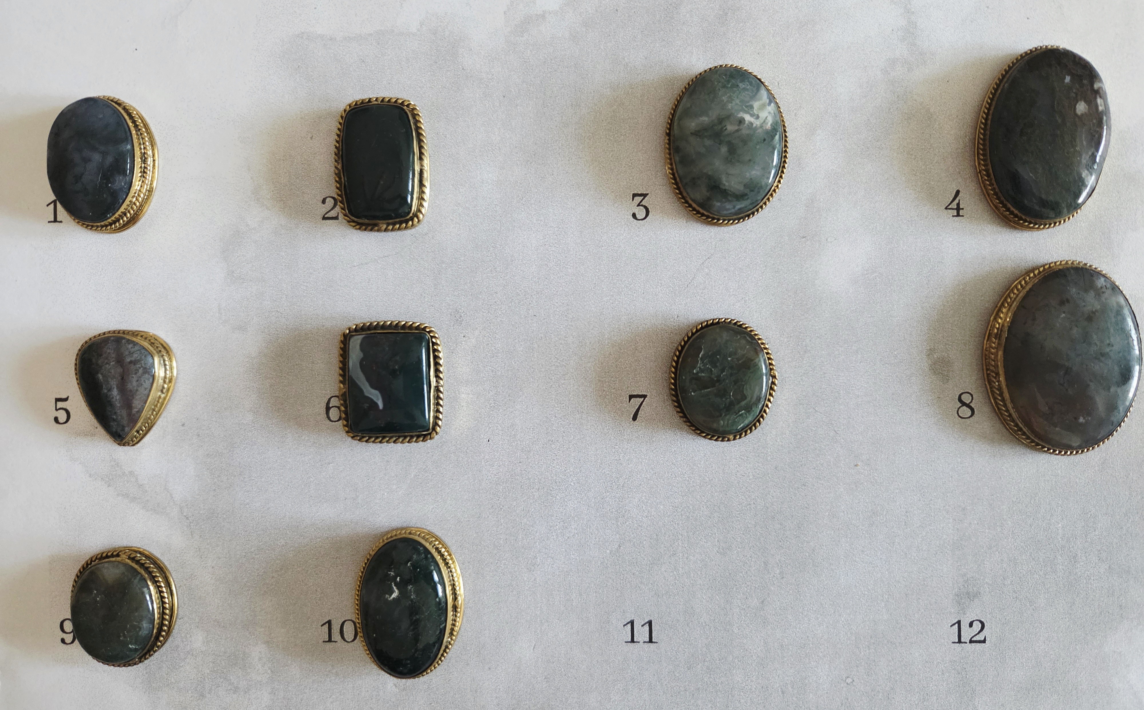 Toutes les pierres sont en photos ici, le numéro de le pierre est directement sur la photo de la pierre, sélectionne dans le menu déroulant la pierre d'après son numéro de référence, au même endroit il y a la taille de la pierre