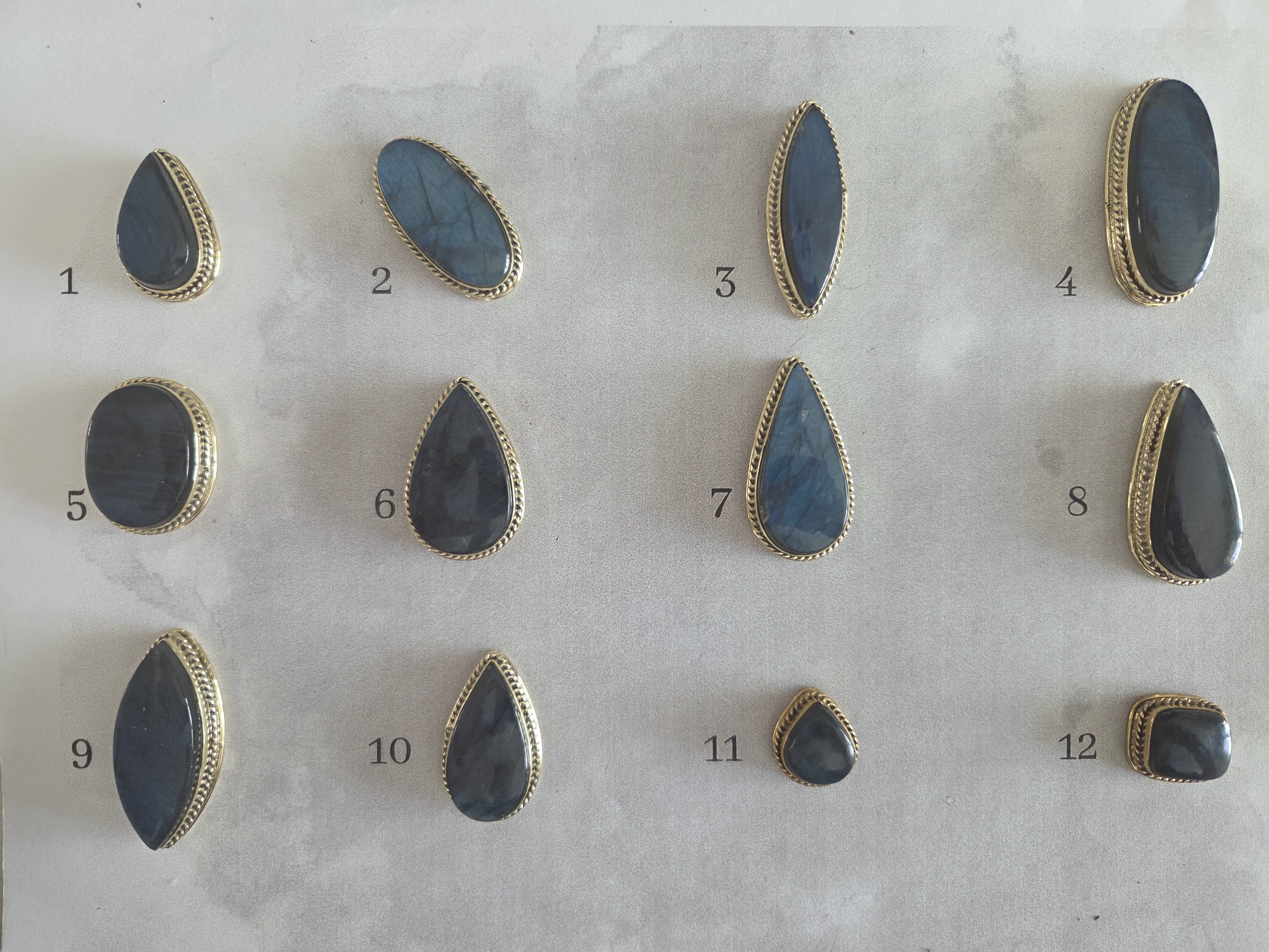 Toutes les pierres sont en photos ici, le numéro de le pierre est directement sur la photo de la pierre, sélectionne dans le menu déroulant la pierre d'après son numéro de référence, au même endroit il y a la taille de la pierre