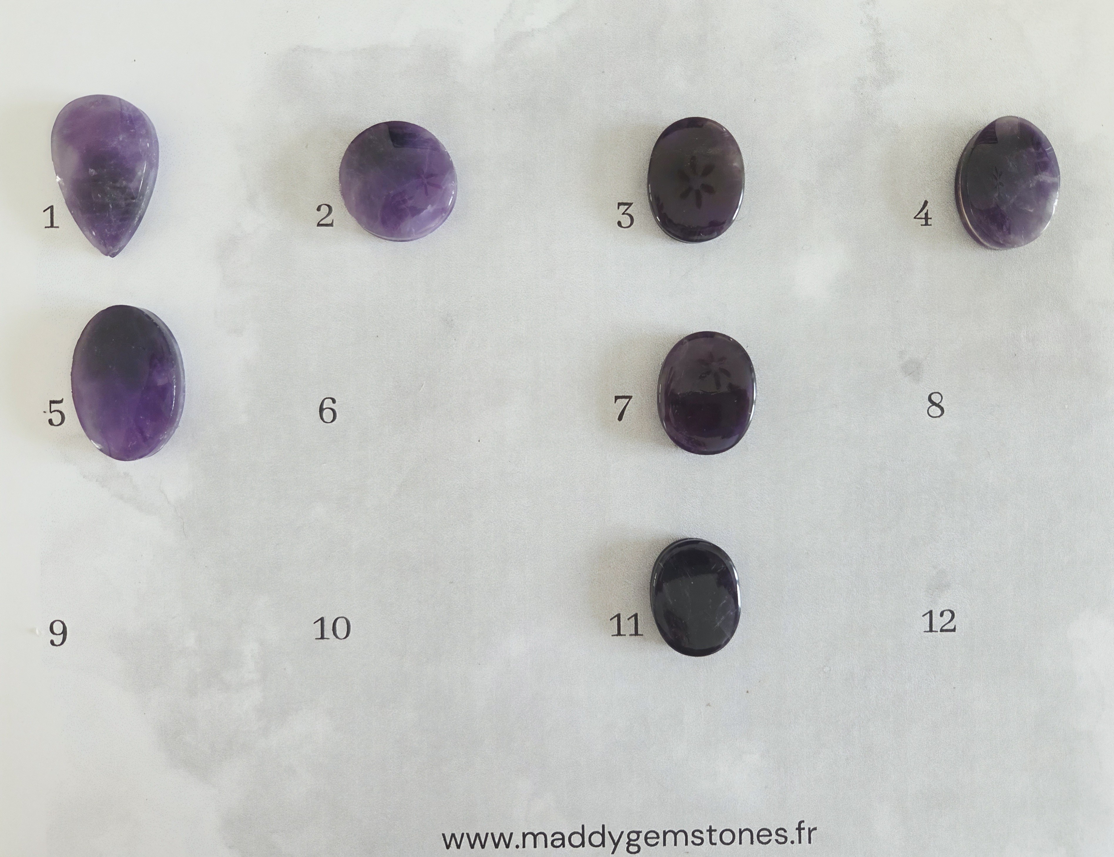 Les numéros des pierres sont sur les photos, la taille est dans le libellé, exemple 41/31 41 mm sur 31 mm